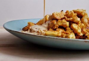 - Verser sur le tofu et mélanger pour enrober chaque morceau.